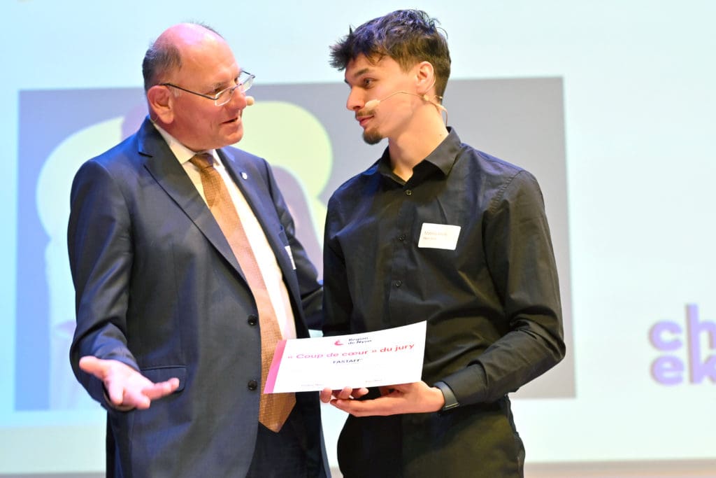 Malgré l’absence de lauréat·e du Prix à l’innovation, les membres du jury ont toutefois souhaité marquer leur encouragement sous la forme du prix « Coup de cœur » à l’entreprise FASTAFF’ et à sa solution numérique qui met en relation étudiant·es et employeurs. Fondée par Dana Calloni et Matteo Melfi, l’entreprise vient en aide aux jeunes à la recherche d’un emploi temporaire, ainsi qu’aux entreprises locales ayant besoin de ressources humaines. La plateforme numérique compte actuellement une centaine de structures qui recrutent.