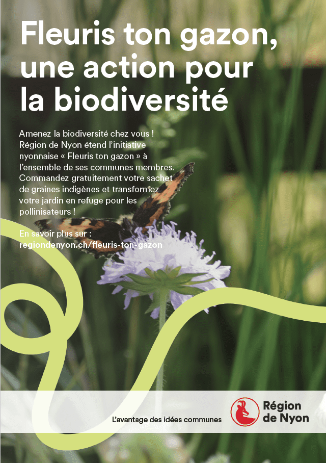 Région de Nyon étend l’initiative nyonnaise « Fleuris ton gazon » à l’ensemble de ses communes membres. Commandez gratuitement votre sachet de graines indigènes (200g) et transformez votre jardin en refuge pour les pollinisateurs!